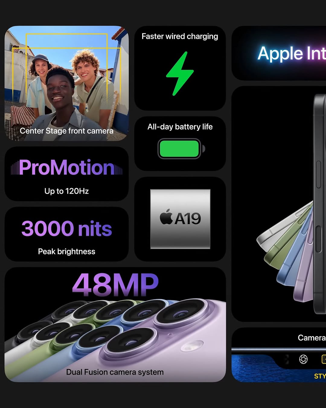 Meet the new iPhone 17. Designed with contoured edges, thinner borders, and durable materials like Ceramic Shield 2 on the front, it looks — and stays — beautiful. You can see and do more of everything you love on a 6.3-inch Super Retina XDR display. And enjoy smoother scrolling and more immersive gaming with ProMotion, with an adaptive refresh rate up to 120Hz. Take it for a spin.